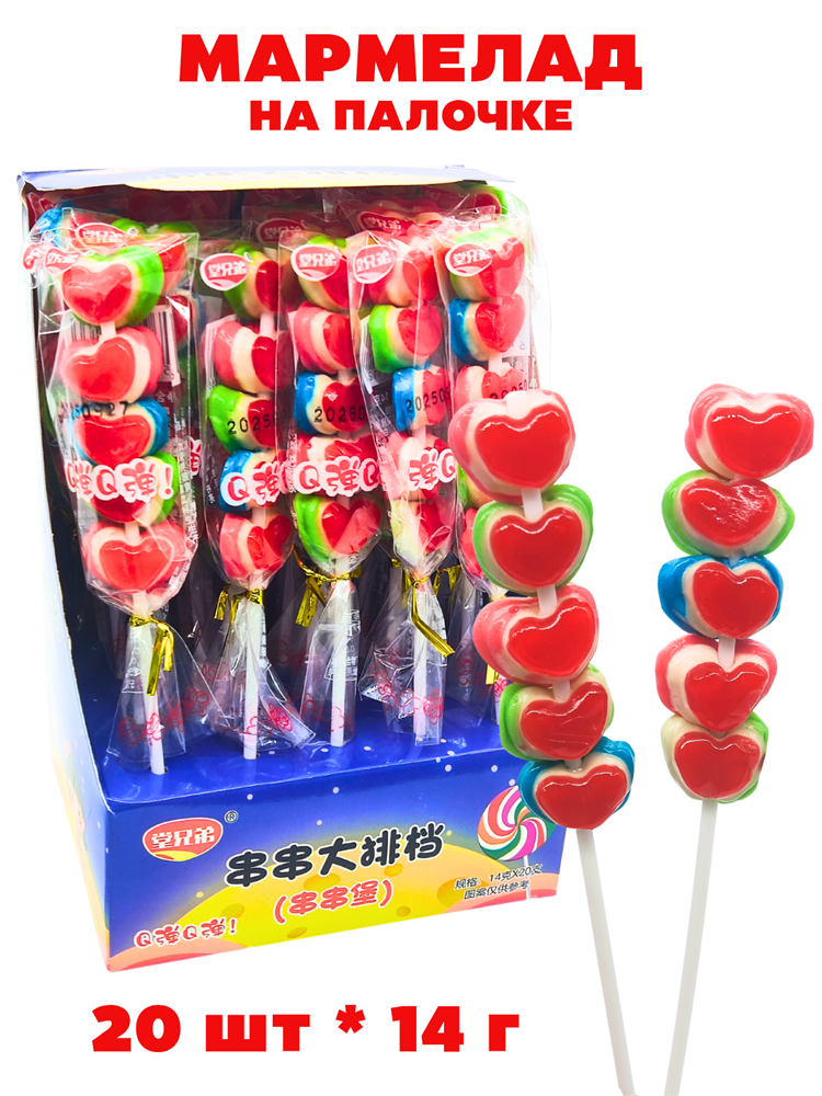 Мармелад на палочке Сердечки в дисплее (41946) 14 гр*1 кор х 12 бл х 20 шт