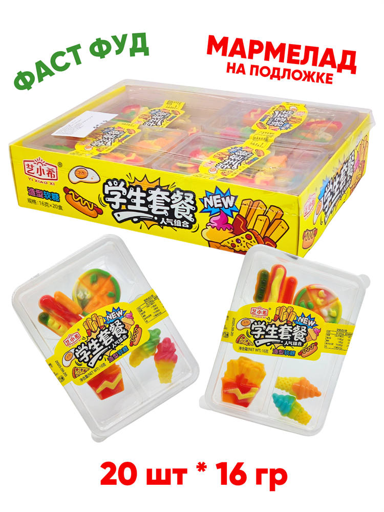 Мармелад на подложке Фаст Фуд Yi Xiao (20629) 16 гр*1 кор х 12 бл х 20 шт