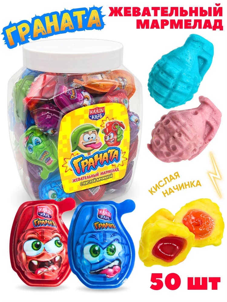 Мармелад жевательный Граната с кислой начинкой (Канди Клаб) (MAR170) 10 гр*12 банок*50 шт