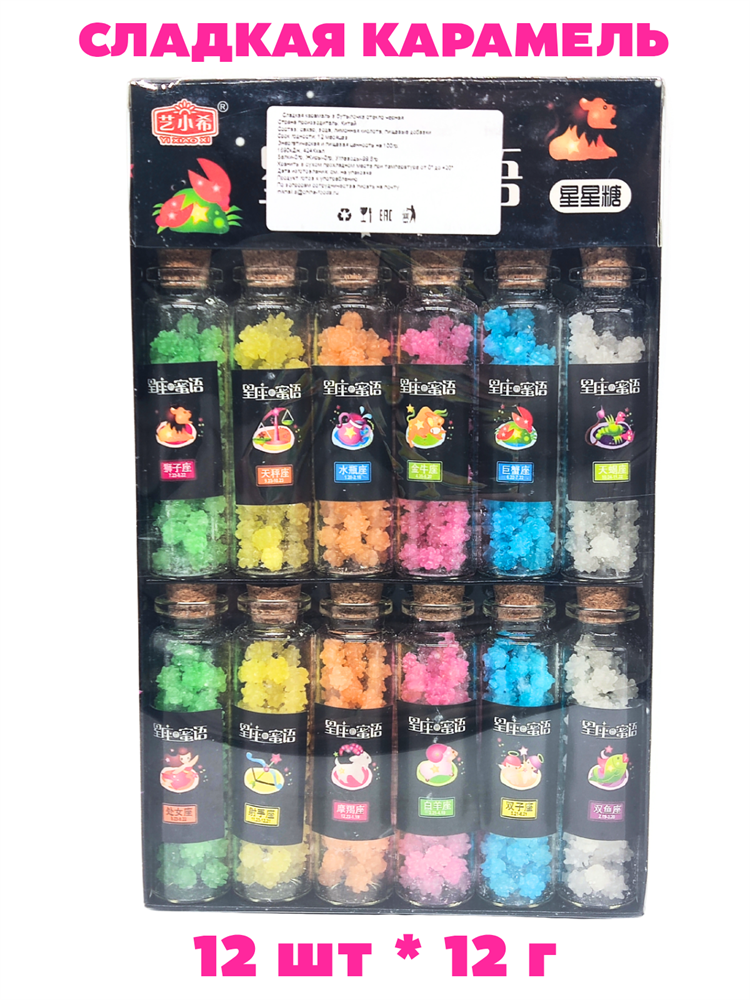 Сладкая карамель в бутылочке стекло Знаки зодиака Yi Xiao Xi (20193) 12 гр*1 кор х 24 бл х 12 шт