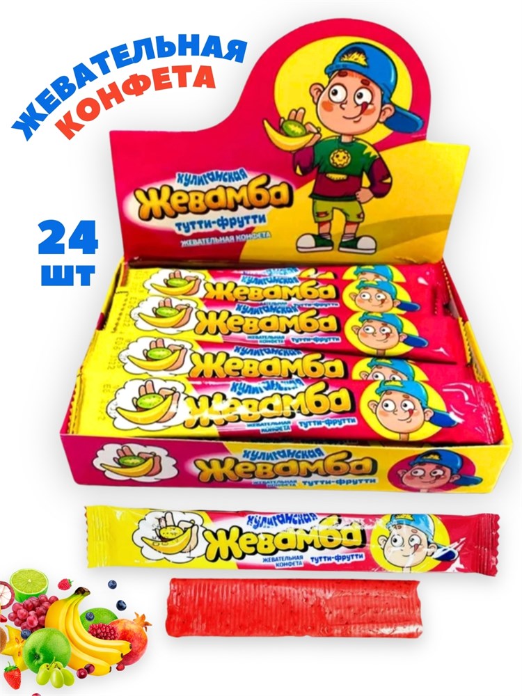 Конфета жевательная Хулиганская Жевамба Тутти - фрутти (Канди Клаб) (CHW024) 12 гр*24 бл*24 шт