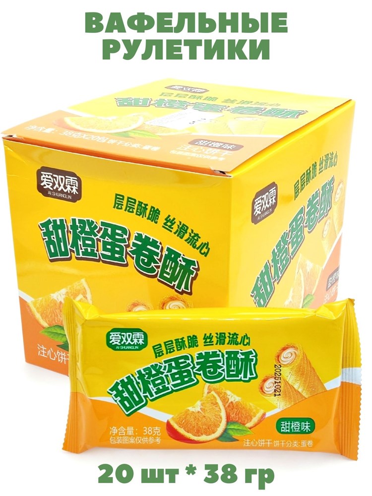 Вафельные рулетики с начинкой Апельсин Ai Shuanglin (0220) 38 гр*1 кор х 12 бл х 20 шт