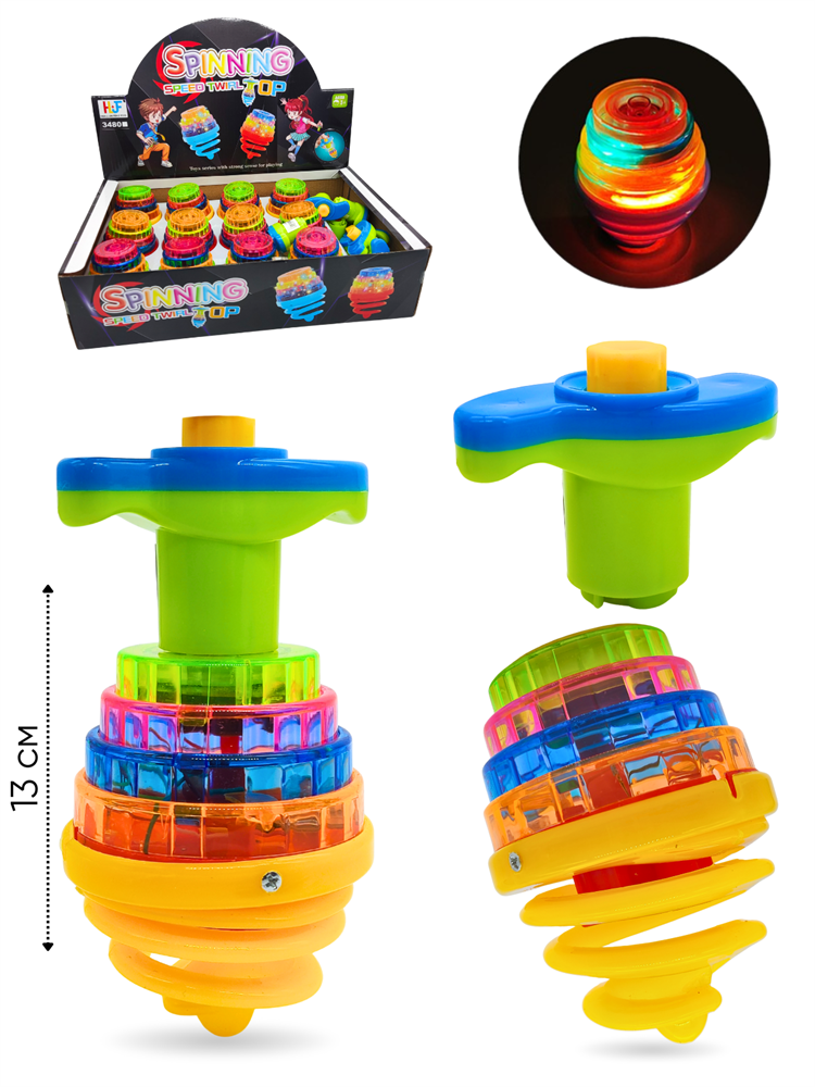 Волчок Пружинка с запускающим устройством (свет, звук) 8 см 1 блок х 12 шт 3480D