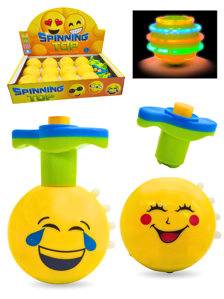 Волчок Смайлик с запускающим устройством (свет, звук) 7 см 1 блок х 12 шт 1234D