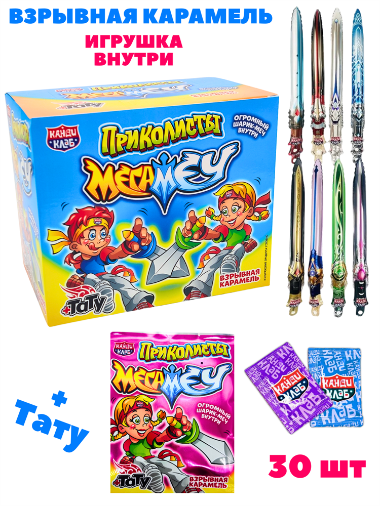 Взрывная карамель Приколисты Мега Меч с игрушкой и татуировкой (PPC012) 1 гр*12 бл*30 шт